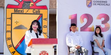 En presencia de la gobernadora de Baja California, Marina del Pilar Ávila Olmeda, autoridades de los tres niveles de gobierno y representantes de la sociedad civil, la presidenta municipal Norma Bustamante, encabezó el protocolo cívico por el 123 Aniversario de la Fundación de Mexicali.